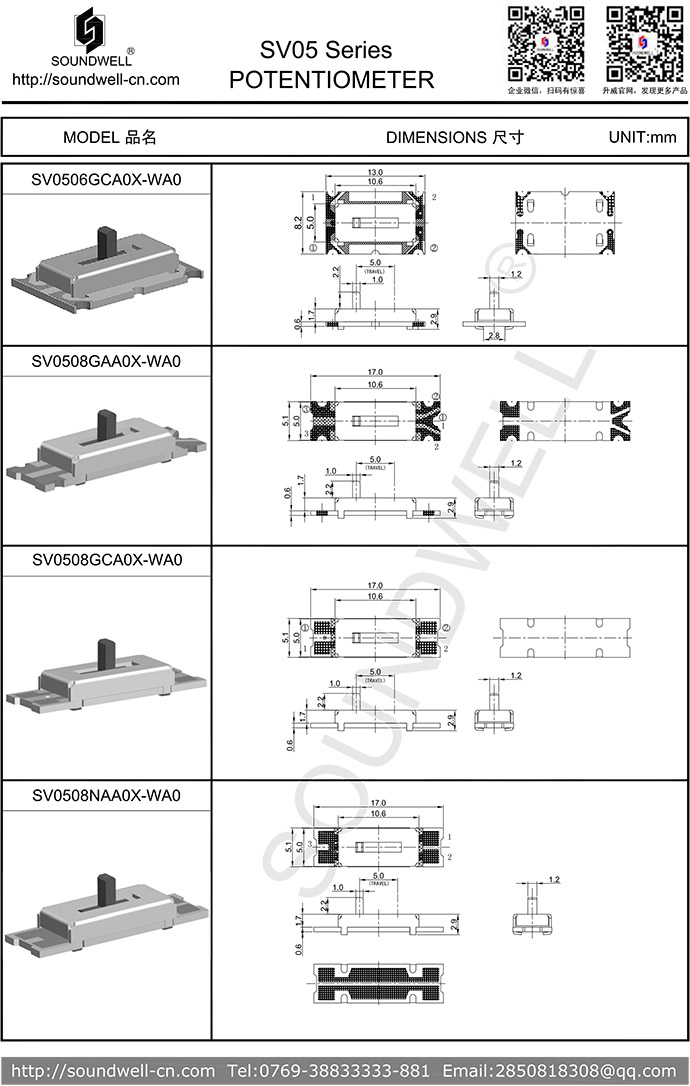 | Main Specifications: | Travel: 5mm Resistance Tolerance: ±20% Rated power: 0.005W Operating temperature: -10℃~70℃ Operating life: 5,000 Min |