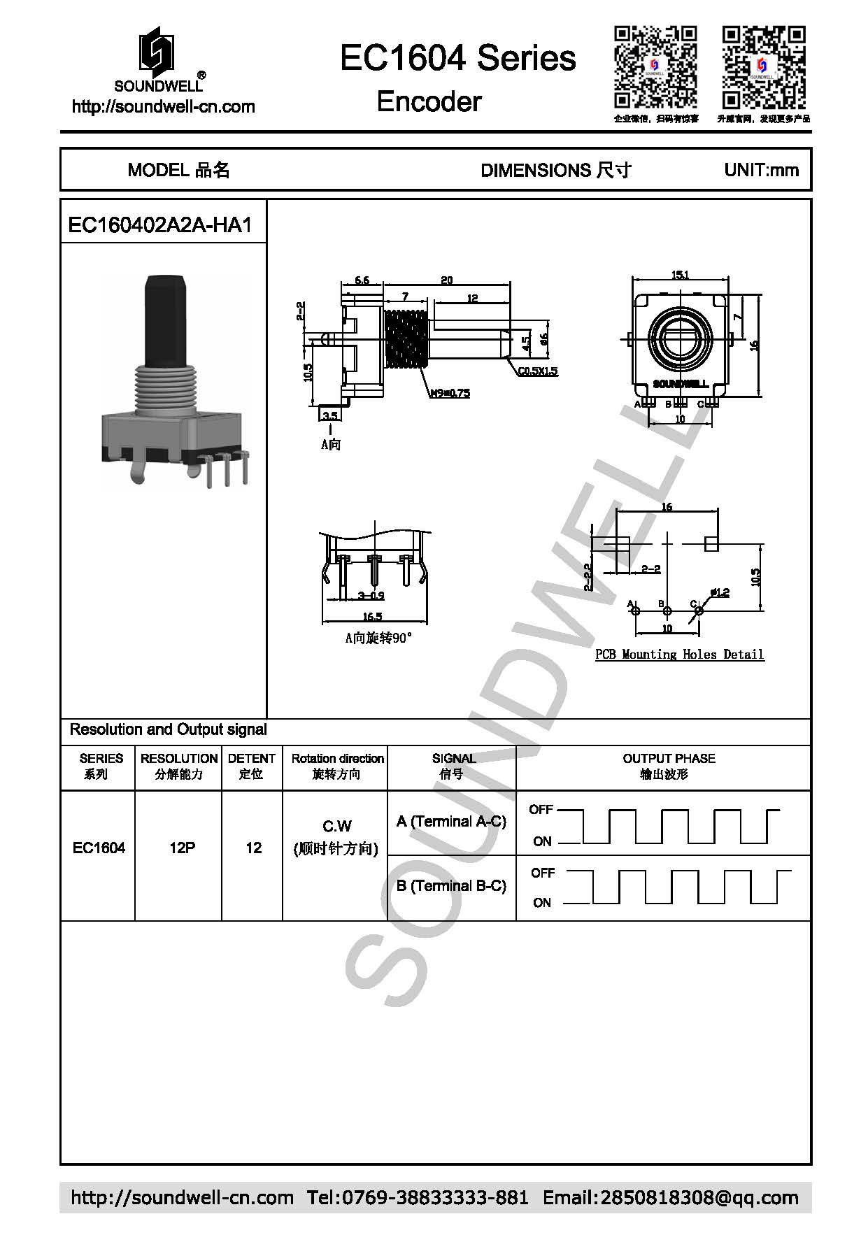 | Encoder model: | EC1604 series |