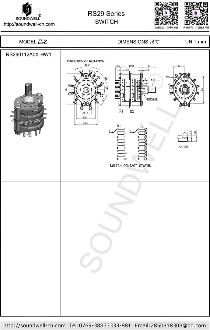 | Main Specifications: | Dimensions:25mm; Rated power:DC 30V 0.3A; Contact resistance:50mΩ Max ; Positioning Points:2~12 ; Operating temperature:-10℃~70℃; Service life:10,000 More than times; |
