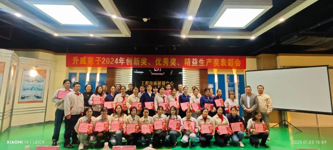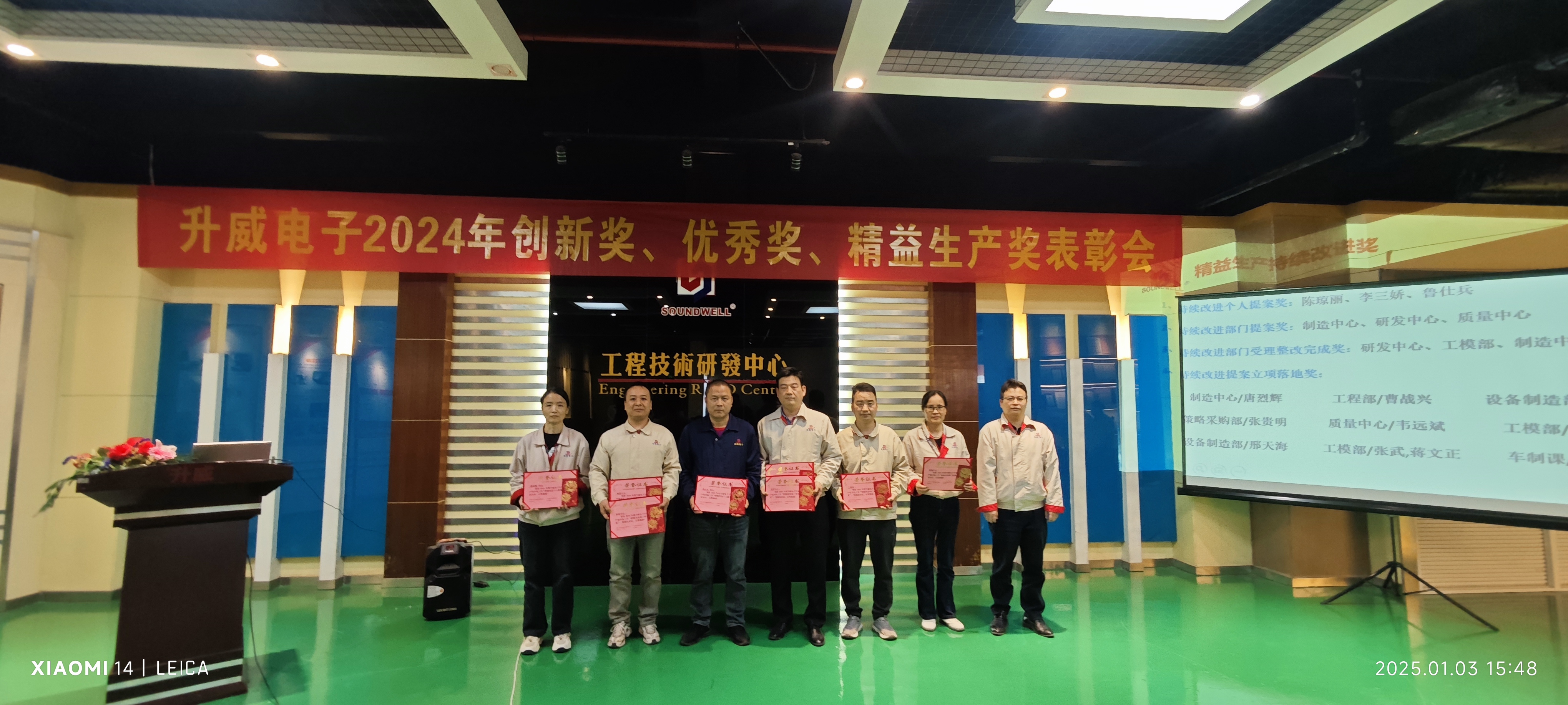 為在全公司營造“積極、向上、進(jìn)取、奉獻(xiàn)”的工作氛圍,激發(fā)升威人主人翁精神,不斷創(chuàng)造新的成績。2025年1月3日,升威電子舉辦2024年度評優(yōu)評先表彰大會。以表彰創(chuàng)新人才、優(yōu)秀個人以及優(yōu)秀部門,并設(shè)置優(yōu)秀部門獎、創(chuàng)新獎、精益生產(chǎn)獎、優(yōu)秀勞動獎等四大獎項(xiàng)。