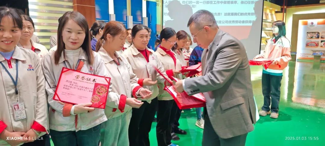 表彰大會上,董事長洪金鑣對公司2024年度的工作做了全面性的總結(jié),充分肯定了升威人一年來所取得的成績。升威公司的發(fā)展離不開每一位員工的辛勤付出和艱苦奮斗,其中涌現(xiàn)出很多優(yōu)秀團(tuán)隊(duì)和員工,他們用自身詮釋了升威人勇于拼搏、積極進(jìn)取、樂于奉獻(xiàn)的精神,不僅是公司不斷進(jìn)步的動力,更是我們每一個人學(xué)習(xí)的榜樣。