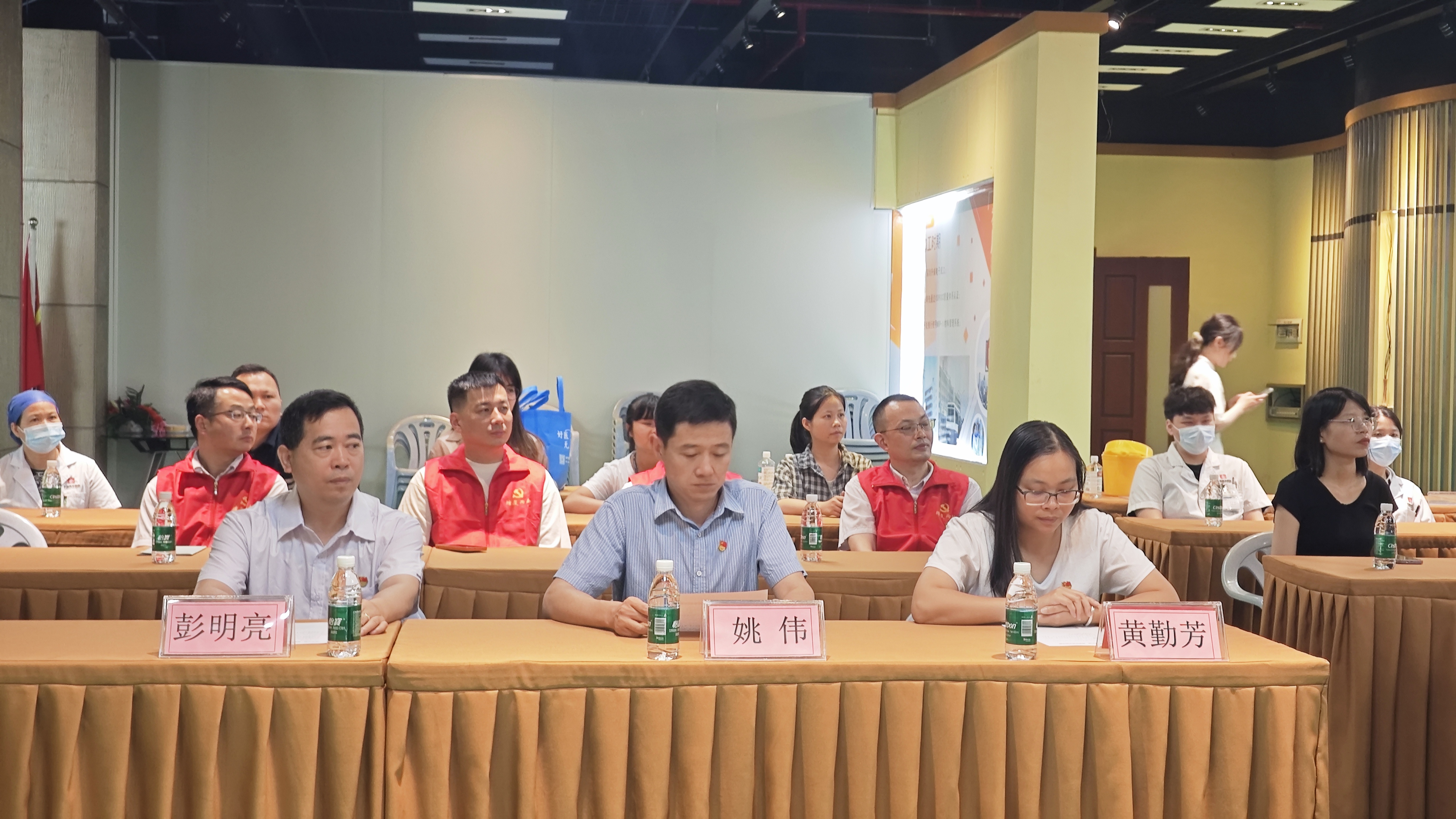 出席本次活動(dòng)的領(lǐng)導(dǎo),他們分別是鎮(zhèn)“兩新”組織黨委副書記羅慶森,鳳凰崗社區(qū)“兩新”黨總支書記黃富權(quán),鳳凰崗社區(qū)非公企業(yè)黨支部書記黃勤芳,升威黨支部書記彭明亮,莞華黨支部書記姚偉以及莞華醫(yī)院醫(yī)務(wù)科科長鐘銳和醫(yī)務(wù)工作人員。