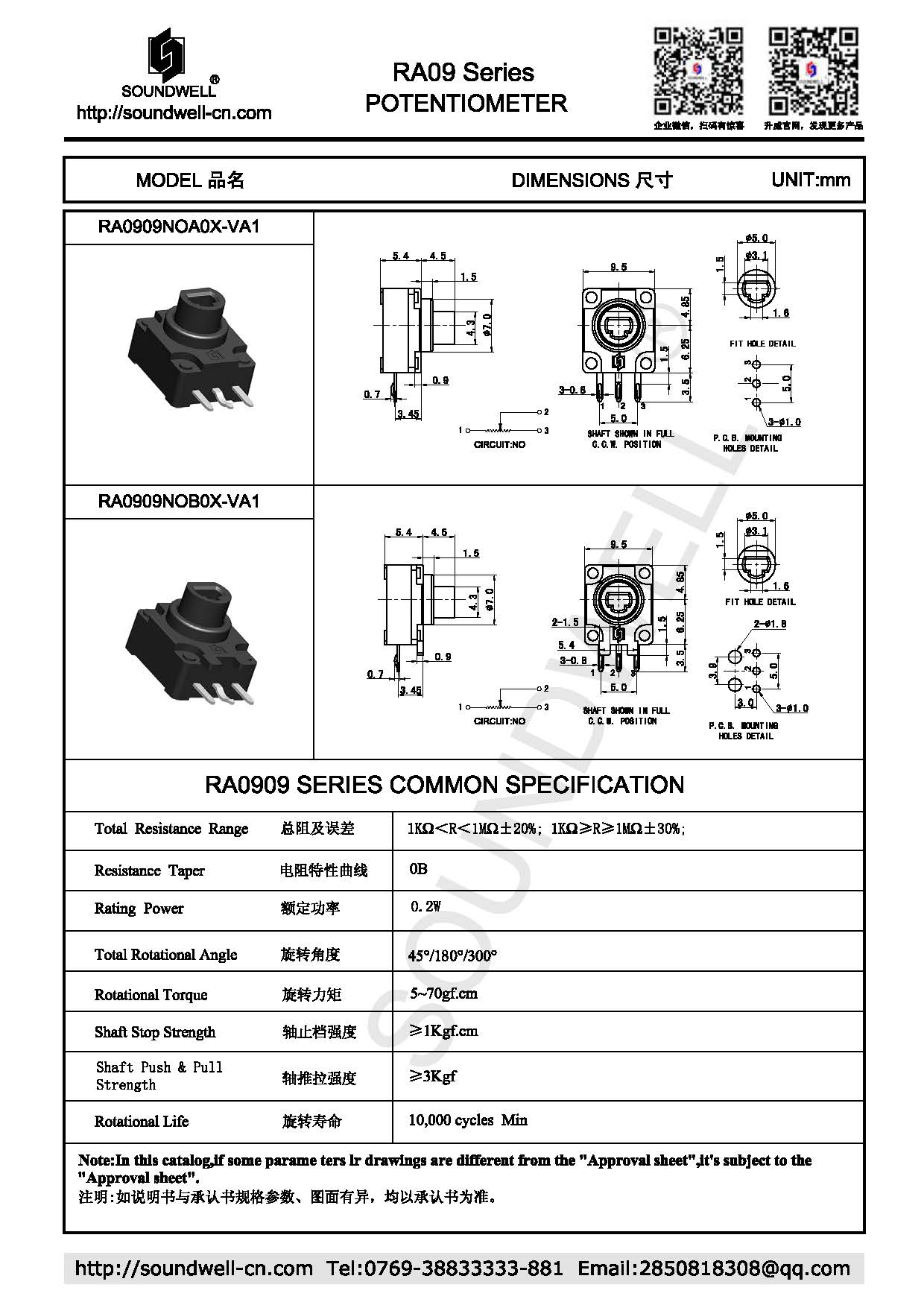 | 主要規(guī)格: | 總阻誤差: ±20%; 全旋轉(zhuǎn)角度:280±10°/300±10° 額定功率: 0.05W; 工作溫度: -10°C~60°C; 使用壽命: 10000次以上; |