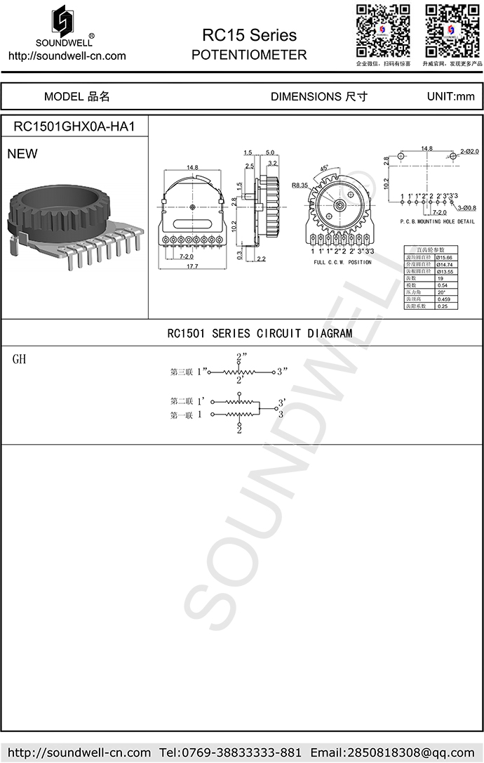 RC15可調(diào)電位器功能: 調(diào)節(jié)音量、分壓。